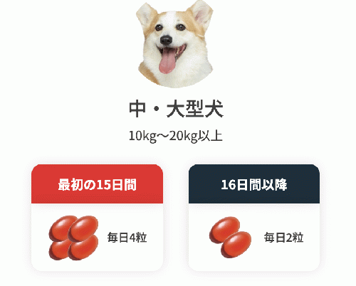 アンチノール プラスは小さなカプセルのため、多くの犬で嗜好性が良く、そのまま与えたり、食事やおやつに混ぜるなど様々な与え方が可能です。長期継続しての使用にも向いています。