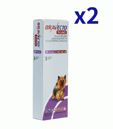 ブラベクトトリウノ 1.27-2.5kg | 3錠x2箱 | ノミ | マダニ | フィラリア
