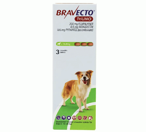 ブラベクトトリウノ >10kg-20kg | 1箱 3錠 | ノミ | マダニ | フィラリア