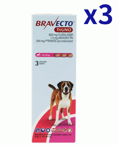 ブラベクトトリウノ >40-60kg | 3錠x3箱| ノミ | マダニ | フィラリア