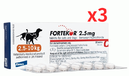 フォルテコール 2.5mg | 犬 | 猫 |28錠 | 2.5-10kg | 3箱