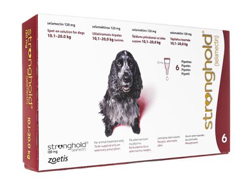 ストロングホールド(犬用)は、Zoetis社製のフィラリア予防薬で、日本で人気の「レボリューション」のヨーロッパ版です。成分・効果・使用方法は同一で、2.5kg未満の子犬から60kgの超大型犬まで対応する豊富なラインナップが特徴です。